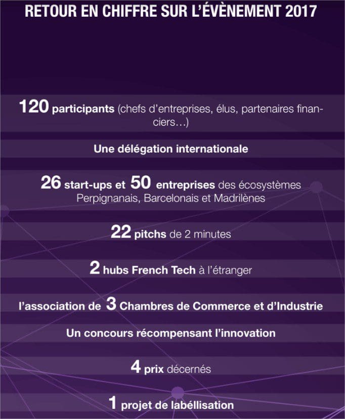 L’an passé, lors de la 1ère édition, cet évènement fut porté par différentes entités, à savoir l’Agence de Développement Economique Pyrénées Méditerranée Invest, (PMI) ; la Chambre de Commerce et d’Industrie des Pyrénées-Orientales (CCI-PO) ; Perpignan Méditerranée Métropole (PMM) ; la Chambre de Commerce et d’Industrie franco-espagnole de la ville de Barcelone ; les Hubs French Tech de Barcelone et Madrid ; la Chambre des Métiers et de l’Artisanat des Pyrénées-Orientales (CMA-PO), ainsi que la région Occitanie Pyrénées-Méditerranée.