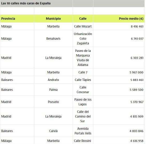 Si vous souhaitez vérifier le prix d’une rue en Espagne, entrez ici.