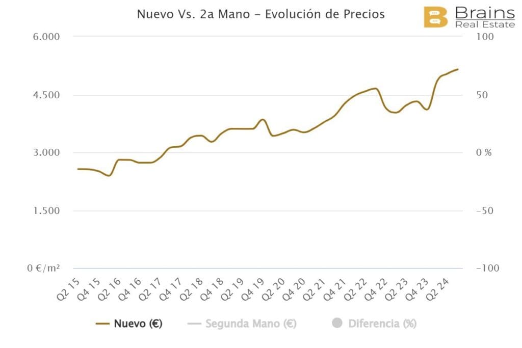 Dans cette zone, située au nord-est de la municipalité, le prix des nouvelles constructions a augmenté de 19,2% au cours des 12 derniers mois, pour atteindre 5.149 euros par m2. Les prix ont également augmenté de 2,2% par rapport au trimestre précédent.