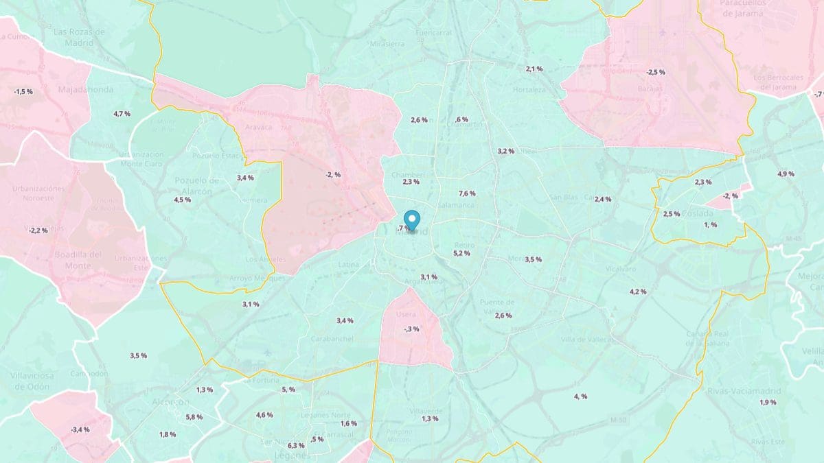Cependant, les prix des logements n’ont pas augmenté de la même manière dans les 21 districts qui composent la ville de Madrid. En effet, alors qu’à Salamanque et à Retiro, le prix a augmenté de plus de 5% en comparaison trimestrielle, il a baissé dans 3 quartiers.