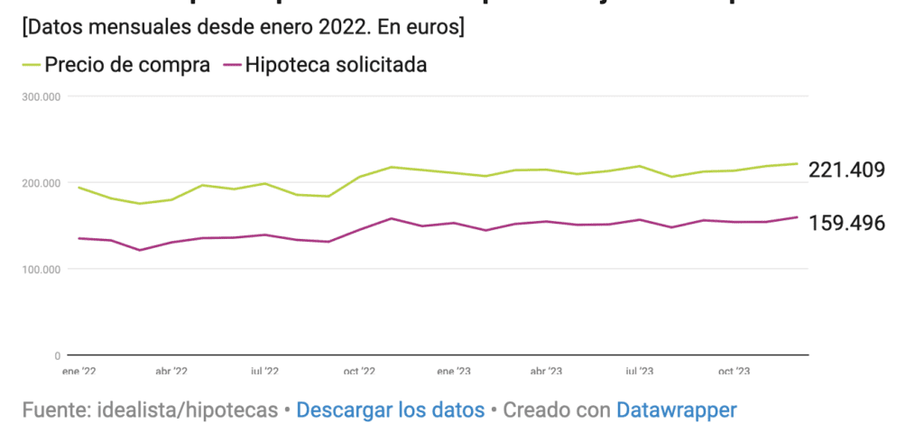 Les chiffres relatifs aux demandes d’hypothèques par les étrangers laissent apparaître quelques curiosités, comme le montant demandé ou le prix d’achat de la maison fermée en 2023, qui atteignent les niveaux les plus élevés des deux dernières années, lorsque la série historique d’hypothèques idéales a commencé.