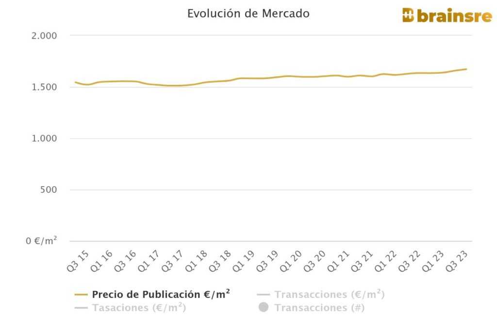 Concrètement, le prix du logement dans la ville s’élève actuellement à 1.810€ par m2, après avoir enregistré une augmentation annuelle de 2,7%, bien que le taux trimestriel ait baissé de 0,5%.