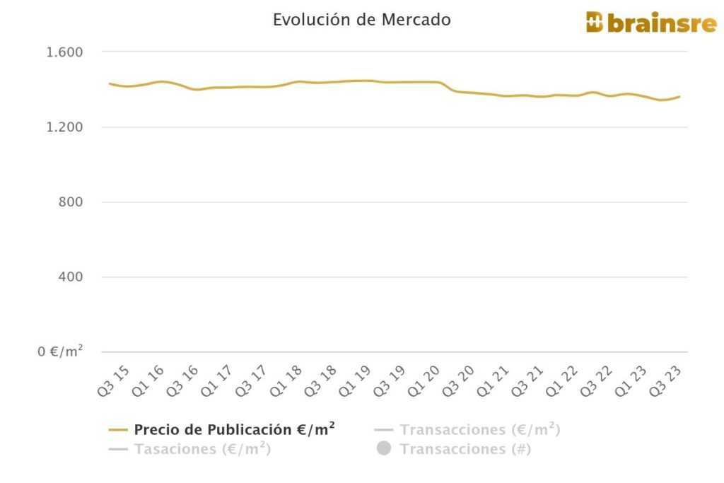 Dans cette municipalité, les prix ont baissé de 0,3% au cours de l’année dernière pour atteindre 1.360€ le m2, bien qu’ils aient augmenté de 1,3% d’un trimestre à l’autre.