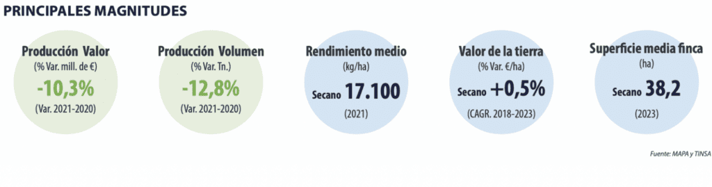 Dans ce type de sol, la valeur des terres montre une stabilité avec une certaine tendance à la baisse ces dernières années. Les exploitations sont présentées dans de grandes dimensions, voire plus grandes que celles des superficies céréalières.