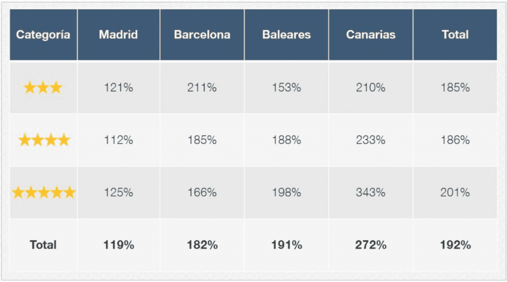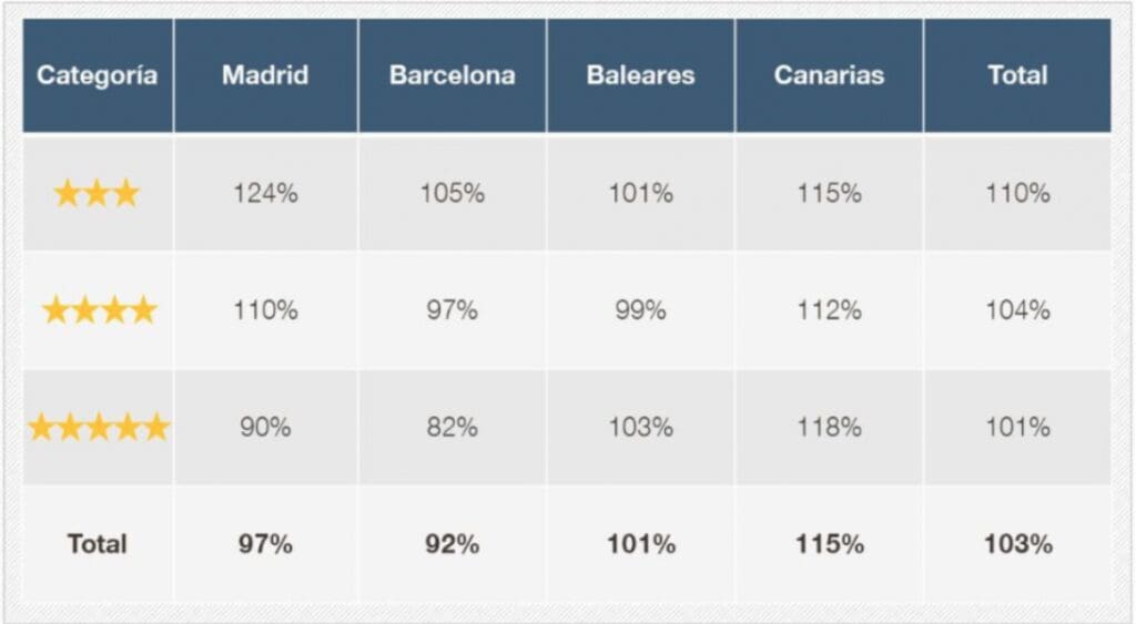 En termes de segments, les établissements 3 et 4 étoiles profitent du tourisme national lors de ce pont de la Constitution pour augmenter encore leurs prix, alors qu’à Noël ce sont les hôtels de luxe qui obtiennent la plus forte augmentation, selon l’étude.