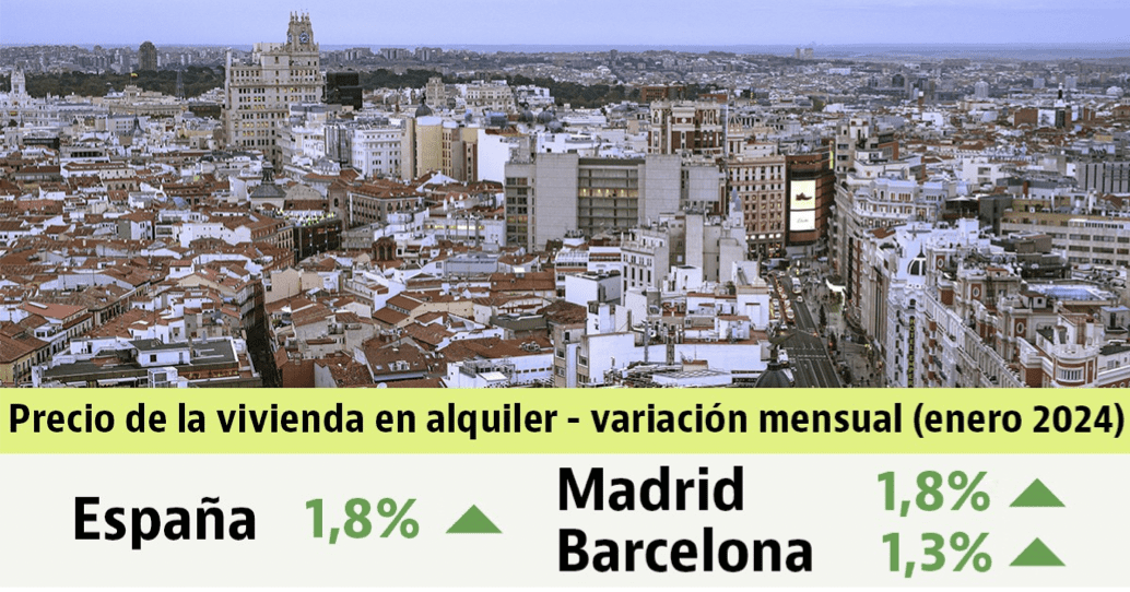 Le mois de janvier s’est achevé sur une hausse mensuelle du prix des loyers en Espagne de 1,8% pour atteindre 12,4€/m2, ce qui représente le prix de location le plus élevé en Espagne dans la série historique, selon le dernier rapport sur les prix publié par idealista. Au cours du dernier trimestre, le prix a augmenté de 4,5%, tandis qu’au cours de l’année écoulée, il a augmenté de 10,8 %.