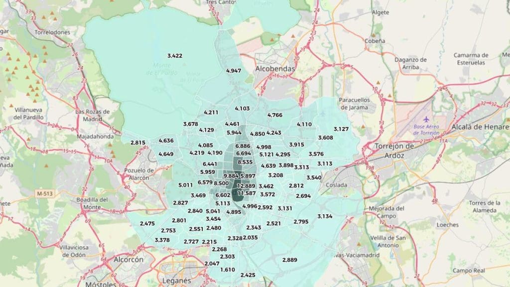 L’endroit le moins cher pour acheter une propriété en dehors de la M-30 est le quartier de San Cristóbal, situé dans le district de Villaverde. Dans cette partie de la ville, le prix a augmenté de 9,6% d’une année sur l’autre pour atteindre 1.610 euros le mètre carré, tandis qu’au cours des 3 derniers mois, il a augmenté de 7,4%.