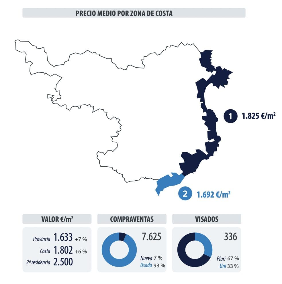 Les ventes et les achats dans les municipalités côtières de Gérone représentent 52%, soit la moitié du marché de la province. En revanche, son activité de développement, qui représente 17%, est l’une des parts les plus faibles de la côte.