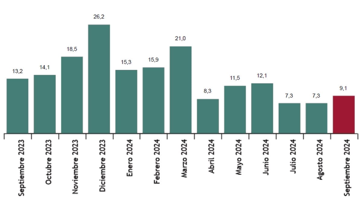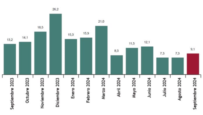 Les activités ont représenté la plus grande part des dépenses en septembre, avec 19,8% du total et une augmentation de 9,7% par rapport au même mois en 2023.