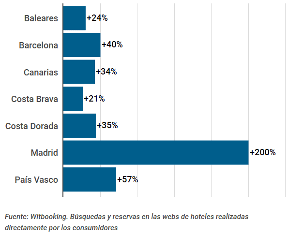 La demande touristique se réveille à nouveau après la léthargie provoquée par l’état d’alerte qui prendra fin le 21 juin. Selon les données du moteur de réservation Witbooking, pendant la semaine du 1er au 7 juin, il y a eu une augmentation de 16 % des nuitées à l’hôtel. « Par rapport à la même semaine l’année dernière, la différence est toujours d’actualité, -42%, mais nous constatons que cette différence diminue de semaine en semaine », explique cette entreprise technologique.