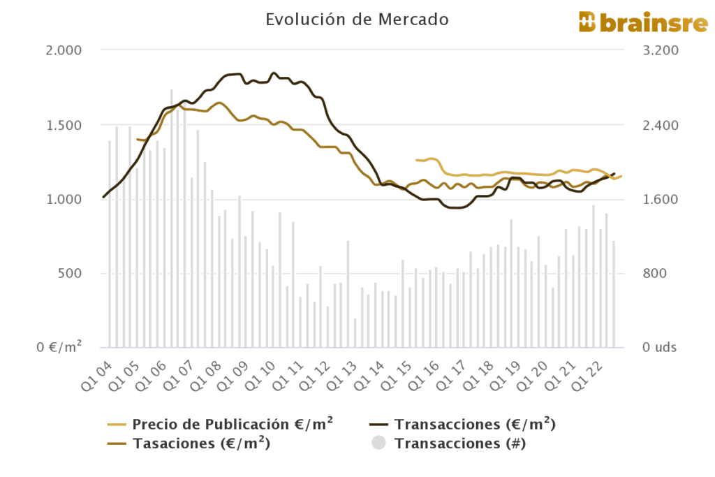 Le prix moyen d’une propriété dans La Rioja a baissé de près de 4% l’année dernière, bien qu’il ait augmenté de 1,4% d’un trimestre à l’autre, selon les données de Brainsre. Ces dernières années, le prix le plus élevé enregistré dans La Rioja remonte au premier trimestre 2016, où il a atteint 1.257 €/m2.