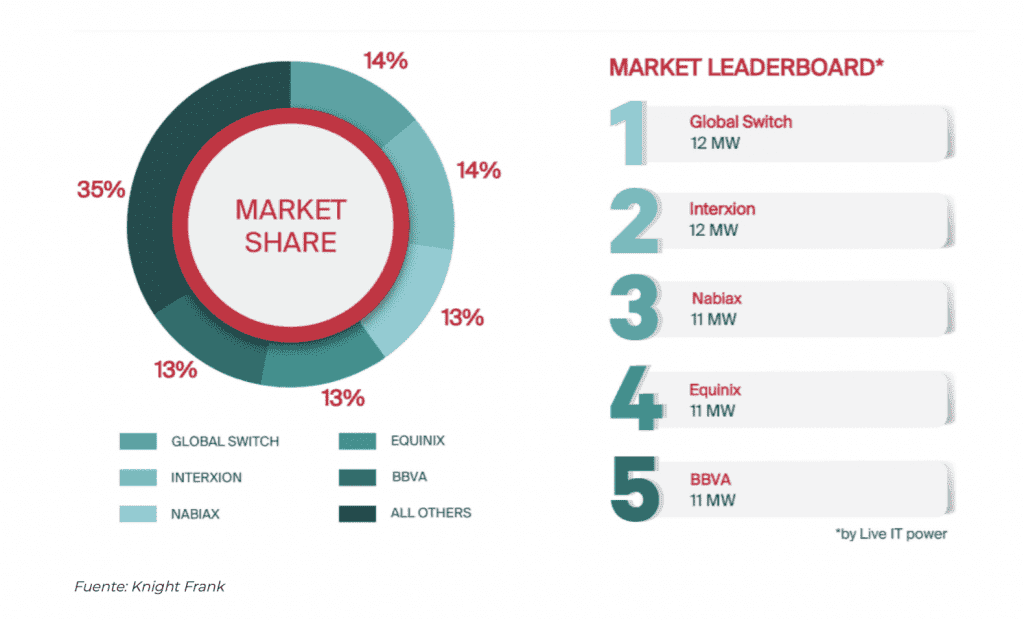 Depuis 2017, Madrid suscite un intérêt croissant de la part de ces opérateurs internationaux, initialement avec l’achat d’ITConic par la référence en co-implantation Equinix, opération qui a été suivie en 2019 par l’acquisition de la plupart des data centers de Telefónica. Réalisée par Asterion Industrial Partenaire pour créer la marque Nabiax. Cette transaction incluait Alcalá, actuellement le centre avec la plus grande capacité en Espagne.