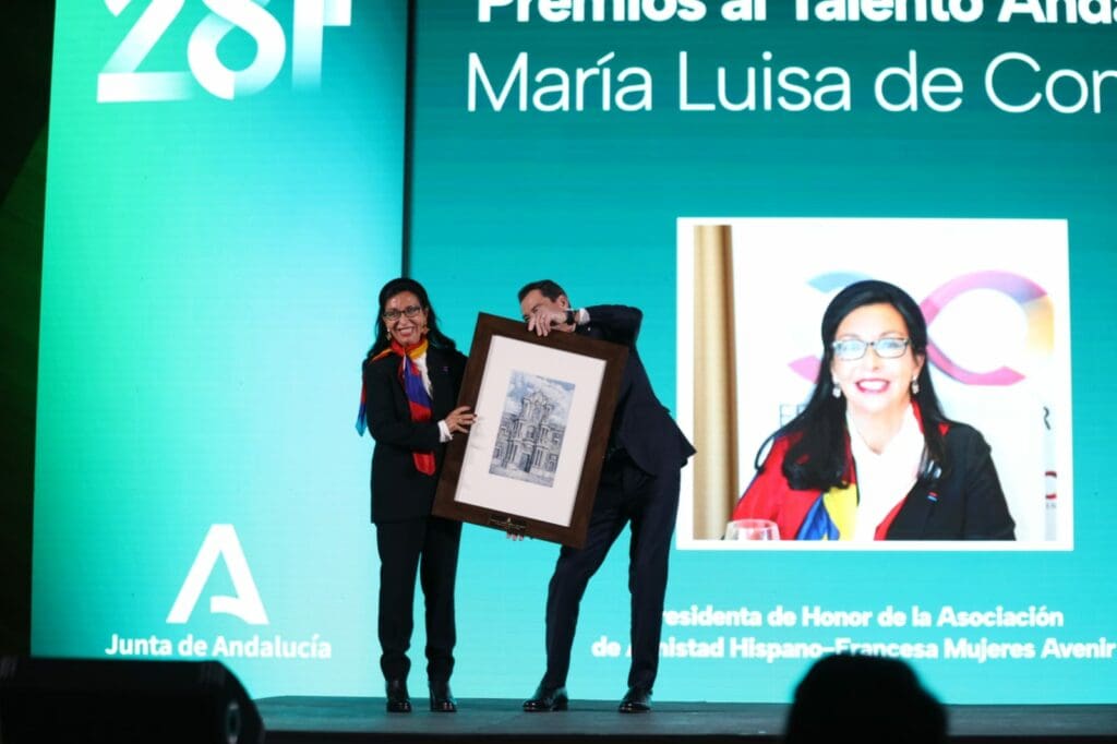 14 mars 2023 – Le président de la Junta de Andalucía, Juanma Moreno, a remis à María Luisa de Contes d ́Esgranges le Prix du talent andalou en reconnaissance du travail pour l’égalité de Mujeres Avenir.