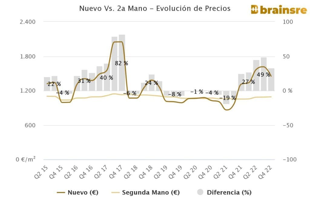 D’autre part, le logement de seconde main se situe à 1091 €/m2, ayant enregistré une croissance de 3,8% l’année dernière et de 0,3% par trimestre.