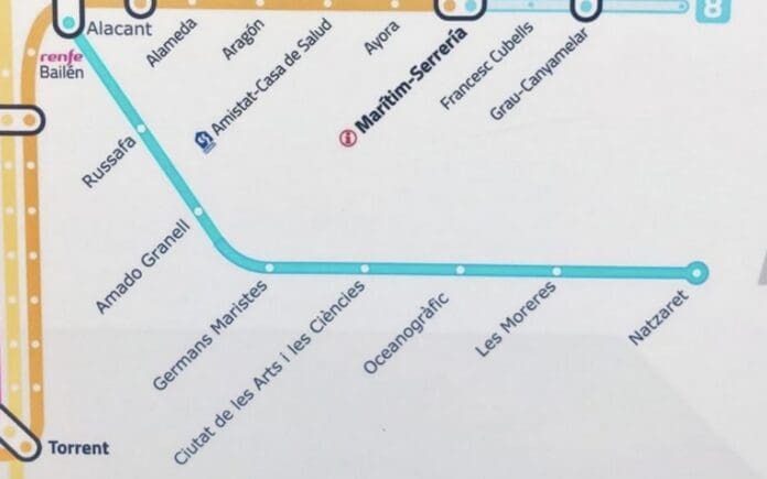 La ligne de 5,3 kilomètres comprend 8 stations au total dont certaines souterraines : par ordre, en partant du centre de Valencia, les stations sont : Alacant, Russafa, Amado Granell-Montolivet, Quatre Carreres, Ciutat Arts i Ciences-Justicia, Oceanografic, Moreres et Natzaret. Ces arrêts permettent donc un accès facile a la Ciudad de la Justicia, au centre comercial el Saler, au quartier de Ruzafa, Monte Olivet, l’Oceanographique bien sur mais aussi el Puente de los Astilleros et à la Marina avec l’edificio del Reloj et le quartier Grau-Canyamelar. Cela dit, les habitants du quartier de Nazareth exigent déjà la prolongation de la ligne, avec une extension les ammenant directement au Cabanyal : ce tracé est, en effet, déjà prévu, mais les travaux n’ont pas commencé, ce qui inquiètent certains habitants.