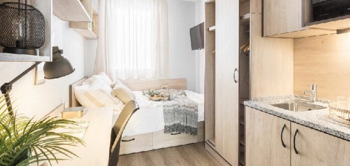 Les deux nouvelles résidences Moraval de Saragosse et de Séville, les premières à être gérées par Nodis, ouvriront leurs portes avec l’arrivée de la nouvelle année académique en septembre et intégreront le nouveau design des chambres que l’entreprise développe depuis 2019, qui comprend une plus grande optimisation de l’espace et des solutions domotiques, comme un capteur qui contrôle si la chambre est occupée ou non, et dans le cas contraire, réduit le coût énergétique de la chambre.