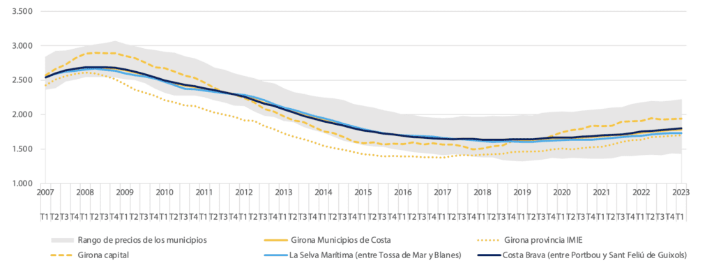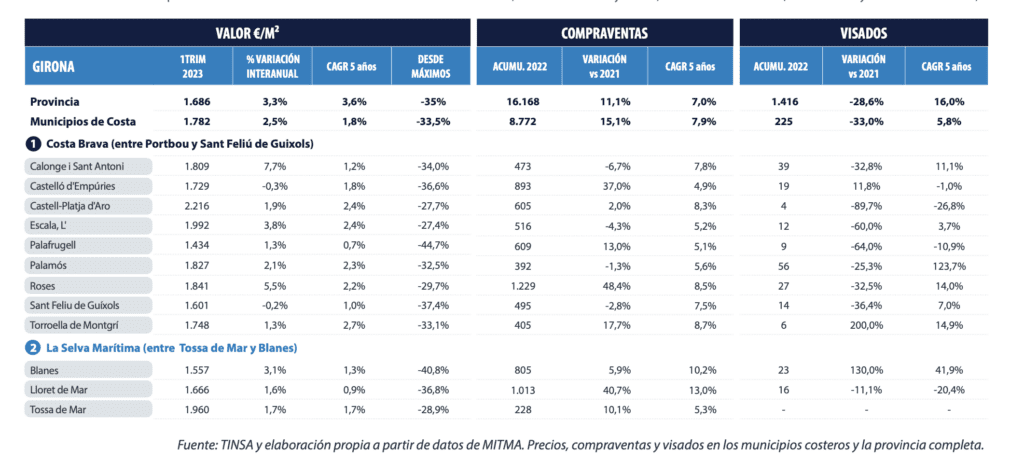 Le profil de la demande est divisé entre les acheteurs nationaux et étrangers. La demande intérieure provient principalement de Barcelone, de la province de Gérone elle-même ou d’autres provinces voisines. Il existe un marché de niche dans le segment supérieur qui présente un profil de demande étrangère différencié. Il y a une prédominance d’achats d’investissement à des fins de location plutôt que d’utilisation personnelle. plutôt qu’à des fins d’autoconsommation.