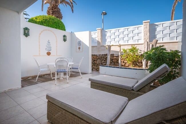 Avec une surface habitable de 120 m2 et 38 m2 de terrasse, ce bungalow offre des vues à couper le souffle sur l’océan, le port et l’île de La Gomera.