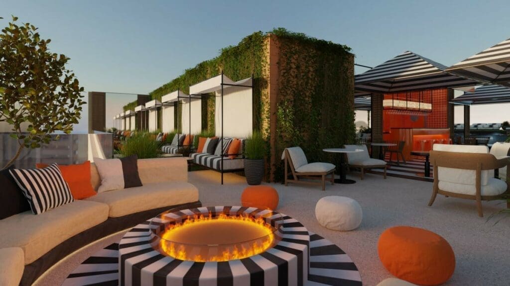Le complexe comprendra 106 chambres, un espace spa avec des cabines de traitement, une grande piscine et un restaurant au rez-de-chaussée, un toit-terrasse avec une piscine ouverte au public et un service de restauration, ainsi qu’une salle de congrès.