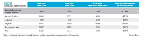 - Logement multifamilial: maisons situées sur la plage de Vera entre 1.800 € / m2 et 2.000 € / m2.