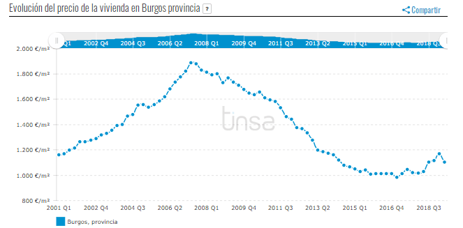 Pour analyser le niveau actuel des prix du logement par rapport à 2001, Tinsa a généré un indice basé sur 1.000 points en 2001. En ce qui concerne cette référence, le prix du logement dans la province de Burgos Le deuxième trimestre de 2019 s’élève à 932 points.