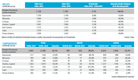 Le niveau d’activité dans la région est dynamique, encouragé par un niveau croissant d’achat et de vente. De grands promoteurs traditionnels promeuvent la construction d’un nouveau projet à Isla Canela (Ayamonte), composé de 53 maisons de luxe situées en front de mer. La typologie prédominante dans la région est constituée de maisons en blocs de construction ouverts de 70 m2 à 110 m2 de qualités moyennes.