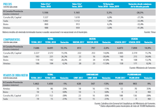 - Logement multifamilial: environ 2.500 € / m2 (à La Corogne). • Logement unifamilial: environ 1.250 € / m2 (Sada, Culleredo, Colombie, Oleiros, etc.).