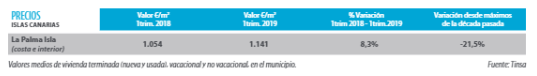 L’augmentation de la demande aurait oscillé jusqu’à 5% par an, en particulier dans les zones les plus touristiques. Les acheteurs nationaux prédominent, à l’exception de Tazacorte, Tijarafe et Puntagorda. Les Allemands et les Anglais sont toujours actifs.