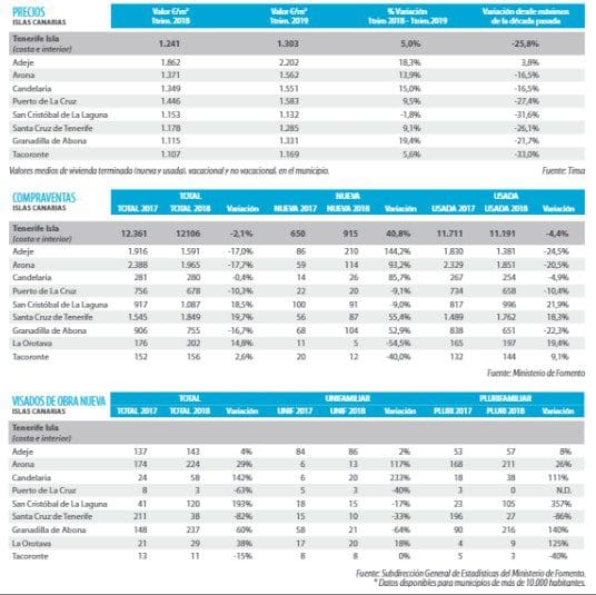 Les prix montrent de légères augmentations dans toute la région, à la fois pour le loyer et pour l’achat. Adeje, Arona et les falaises de Los Gigantes sont celles qui suscitent le plus d’attentes. D’autre part, les zones adjacentes aux terrains de golf sont toujours des lieux privilégiés pour l’achat de logements en résidence secondaire.