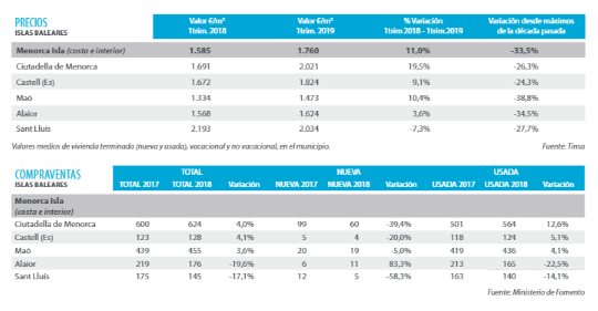Aucune terre n’est vendue. Certaines promotions sont annoncées mais ne démarrent pas en raison d’une faible demande. Toutes à Mahón et Ciudadela. Le reste de la population: paralysie totale.