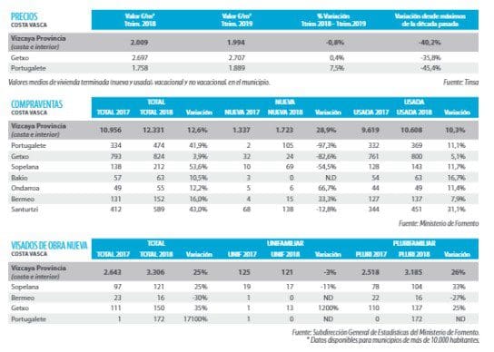 Signes d’amélioration. Marché stable, dans lequel la demande de résidences secondaires est très inférieure à l’offre et davantage dans les municipalités éloignées de Bilbao et de Getxo.