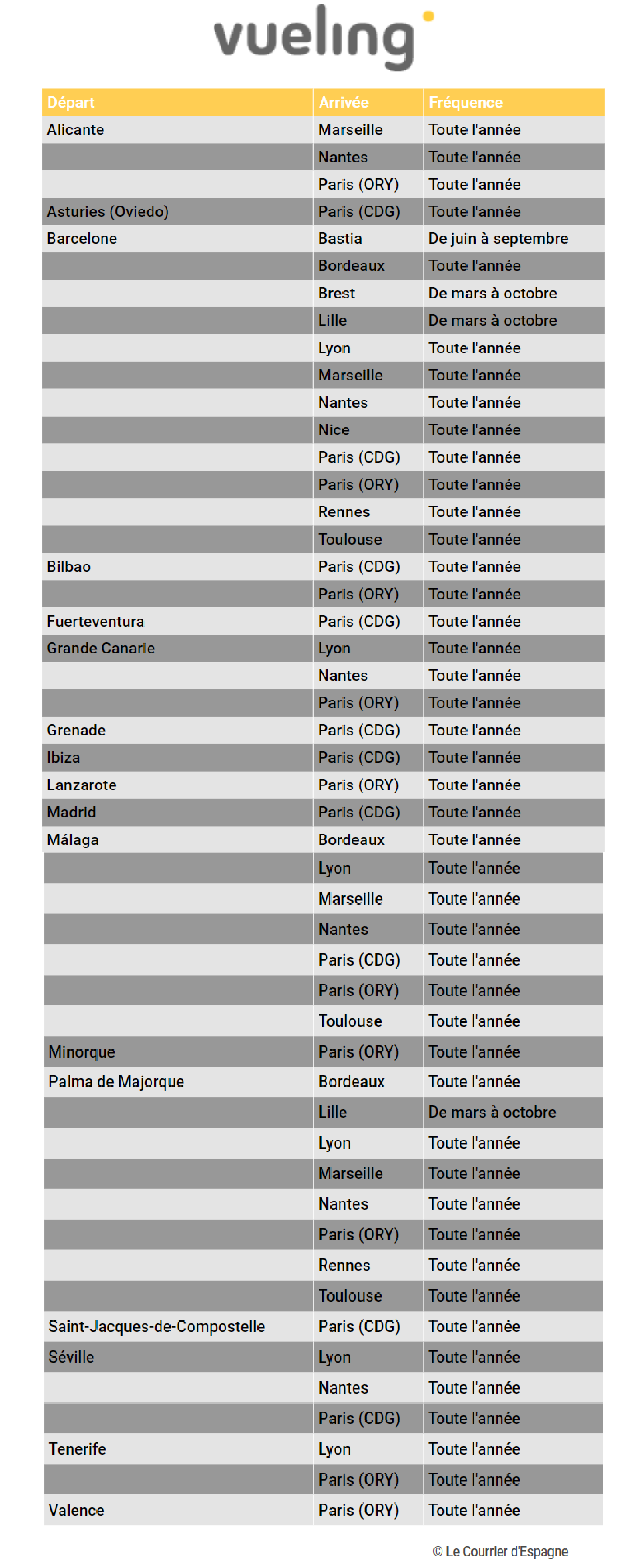 Pour y voir plus clair, voici la liste des lignes aériennes disponibles depuis l’Espagne vers la France.