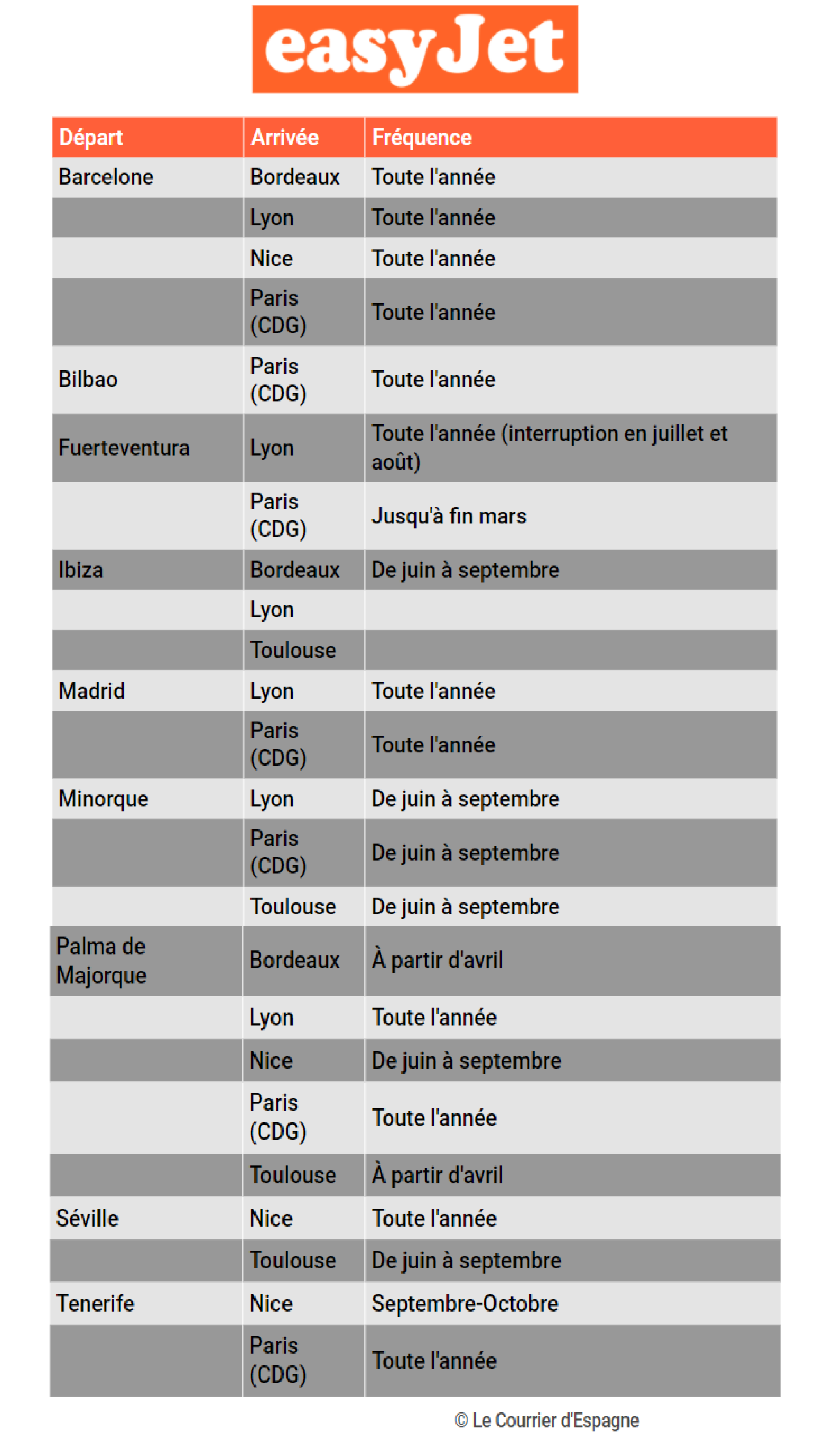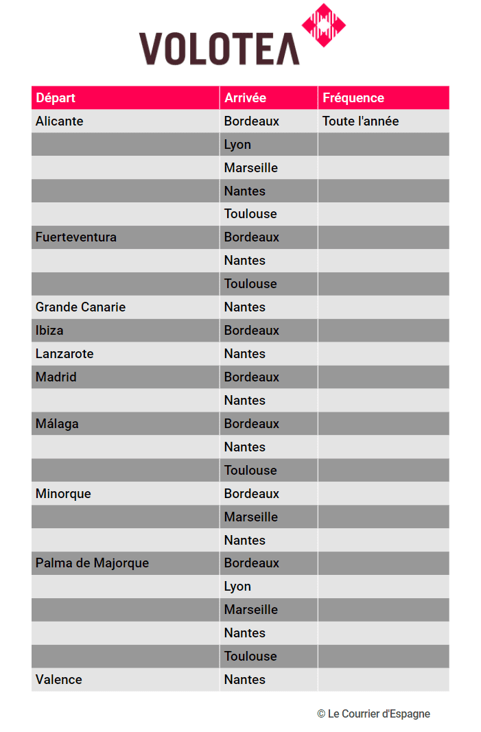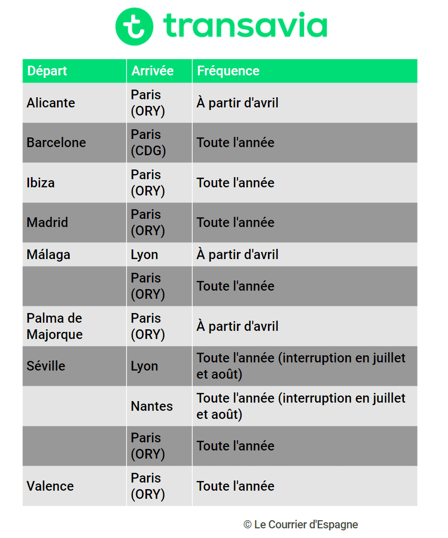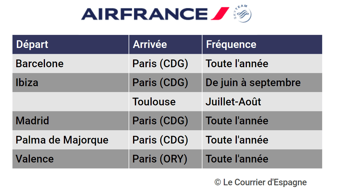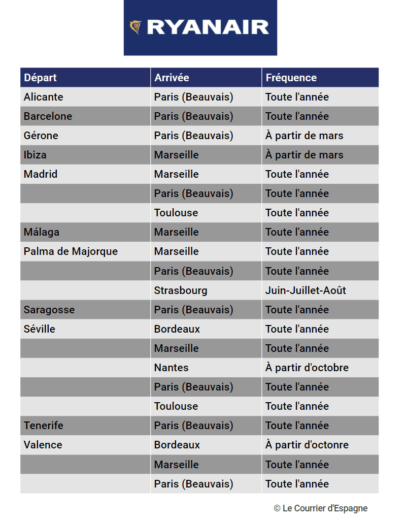 Pour y voir plus clair, voici la liste des lignes aériennes disponibles depuis l’Espagne vers la France.