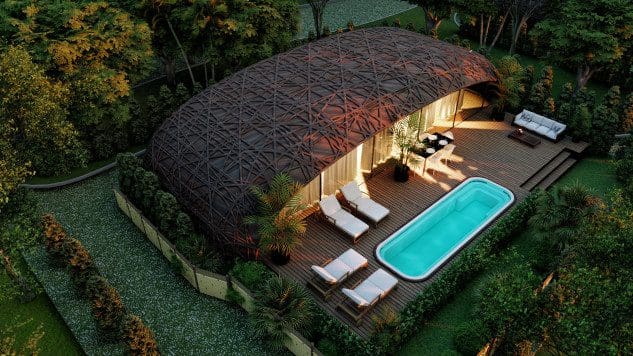 Le complexe offrira des espaces communautaires de luxe intégrés dans la nature, tels que des jardins, des espaces communs et des piscines, dans le but de les mélanger avec le milieu environnant. Les bâtiments sont complètement circulaires en forme de nid d’oiseau, de sorte que toutes les chambres et maisons offrent une vue sur l’ensemble du complexe hôtelier.