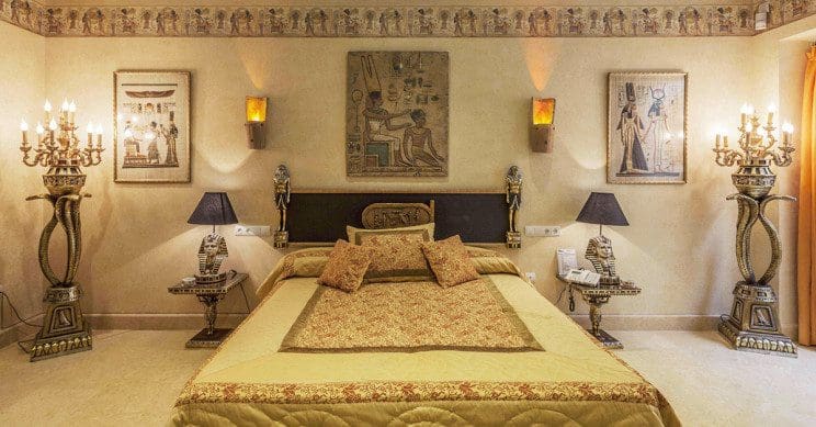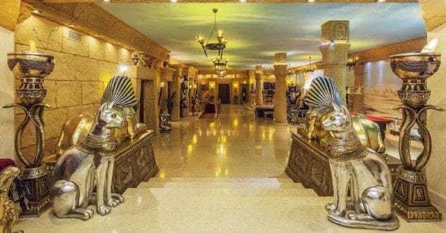 Le demi-sous-sol abrite la zone de divertissement la plus exquise, avec des peintures murales peintes à la main et des statues dorées qui décorent le salon et le bar à cocktails égyptien. À ce niveau, vous trouverez également deux autres suites, décorées sur le thème de l’Égypte ancienne. Il y a un gymnase moderne avec des vestiaires.