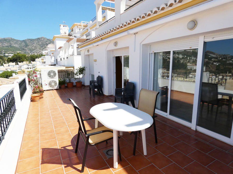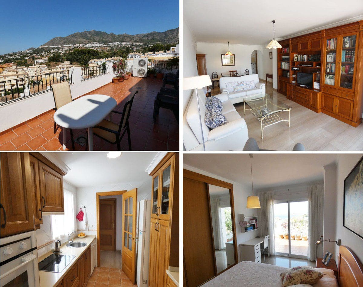 Il se compose d’une entrée, d’une cuisine indépendante équipée avec son coin buanderie, trois chambres et deux salles de bains dont une en suite plus un grand salon salle à manger qui ouvre sur une très grande terrasse orientée à l’Ouest et de laquelle on peut profiter d’une incroyable vue sur la baie de Fuengirola. La terrasse est ensoleillée depuis le matin jusqu’au coucher du soleil. Ce bien immobilier est à 3 minutes à pied d’un grand supermarché et de plusieurs autres commerces dont une pharmacie, un bar, un restaurant, un salon de coiffure et un bazar. Les plages de Benalmadena Costa sont à 10 minutes à pied. Un collège international anglais se trouve également à 3 minutes à pied. L’Aéroport de Malaga est à 20 minutes en voiture. Le centre ville animé d’Arroyo de la Miel avec ses commerces, restaurants typiques, gare et autres services est à 8 minutes en voiture. Si vous cherchez un appartement sur Benalmadena de bon standing et dans une résidence avec piscine, avec trois chambres, qui soit proche du bord de mer et qui soit doté d’une belle terrasse ensoleillée toute la journée avec une vue splendide sur la mer et les alentours, vous seriez bien inspiré de demander à en faire la visite!
