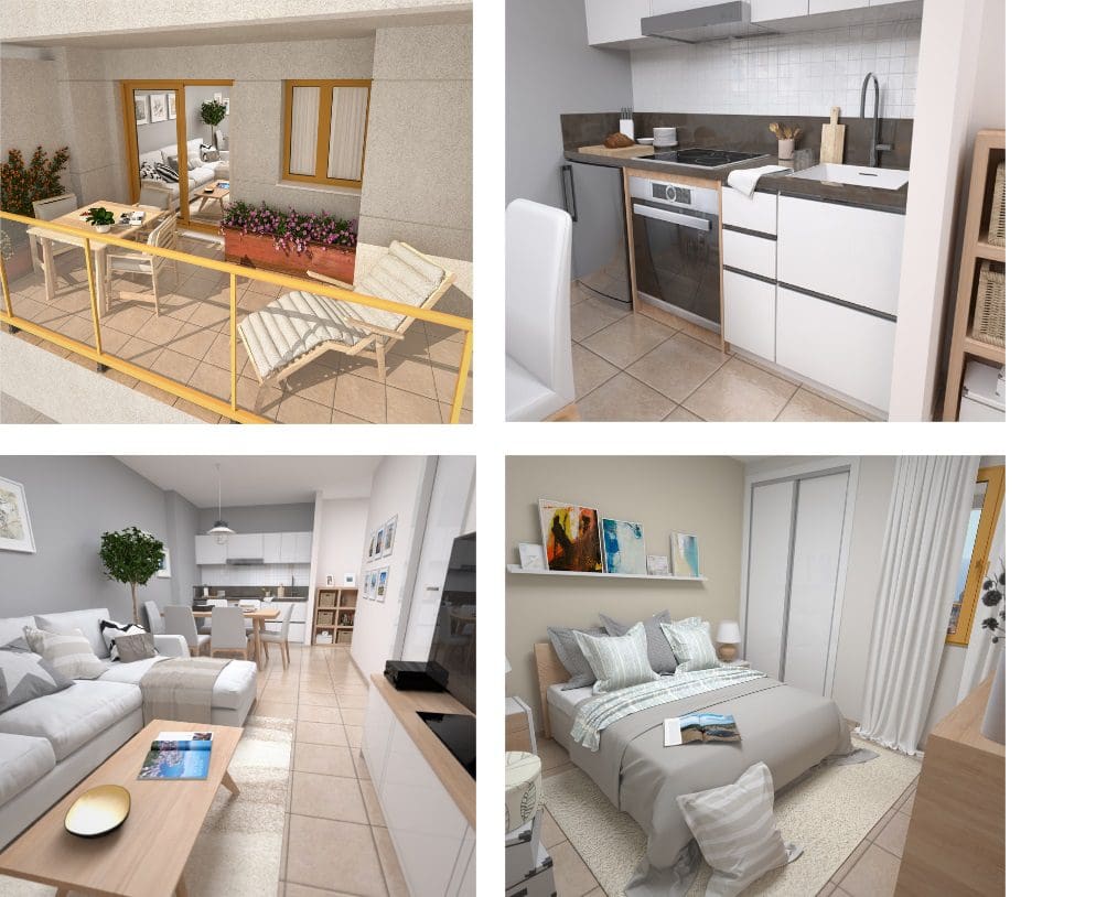 L’appartement possède une superficie de 59,02 mètres carrés. Il se compose d’une chambre, d’une salle de bain, d’un spacieux salon, d’une cuisine équipée et d’une grande terrasse de 12,75 mètres carrés d’où l’on peut apprécier la splendide vue que Calpe offre.