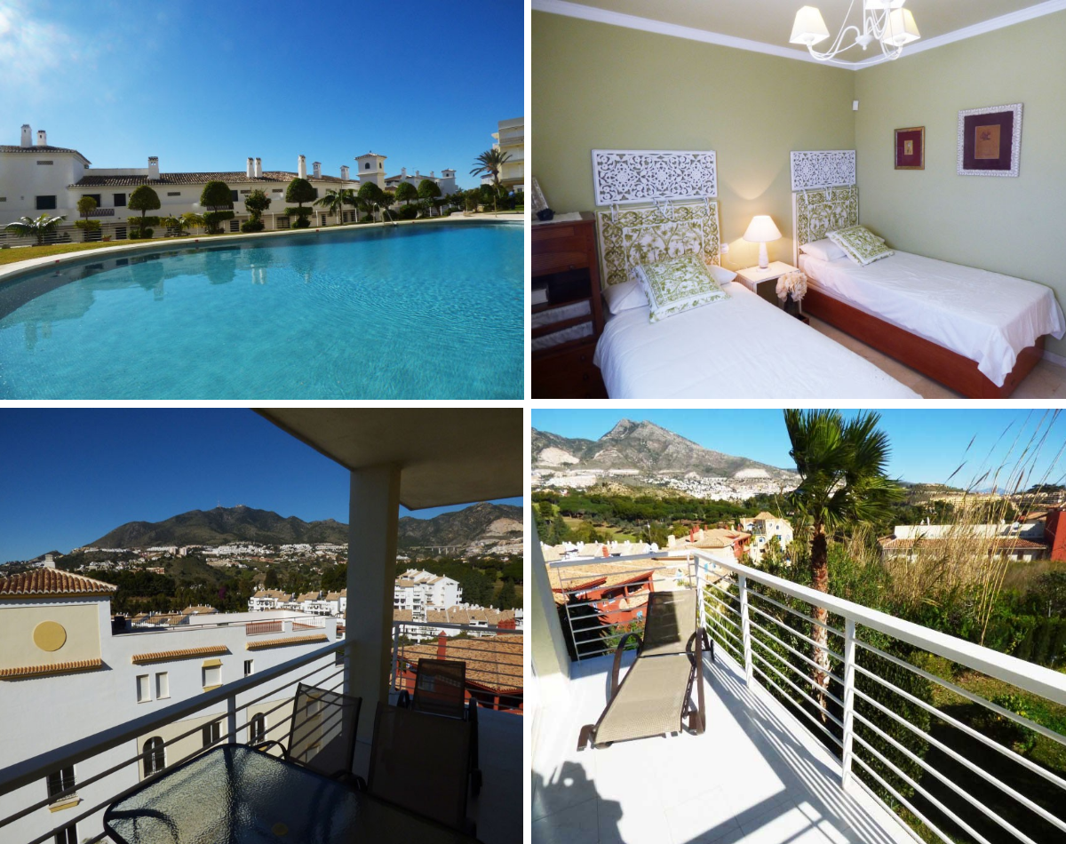 L‘appartement vendu non meublé est dans un état impeccable et jouit d’une magnifique vue sur la mer et les environs depuis ses deux terrasses, l’une orientée à l’ouest et l’autre à l’est. L’appartement se compose d’une grande pièce à vivre avec don ses deux terrasses, une permettant de bénéficier du soleil du matin et l’autre du soleil de l’après midi, d’une cuisine indépendante entièrement équipée et de deux chambres et deux salles de bains dont une en suite. Bien immobilier d’une qualité irréprochable vendu avec une place de parking en sous-sol. Grand supermarché à 5 minute à pied. Les plages sont à 15 minutes à pied et le centre animé d’Arroyo de la Miel est à 8 minutes en voiture. L’aéroport International de Malaga se trouve à 20 minutes. Peu d’appartements deux chambres de cette qualité avec vue sur mer sont actuellement disponibles sur le marché de Benalmadena.