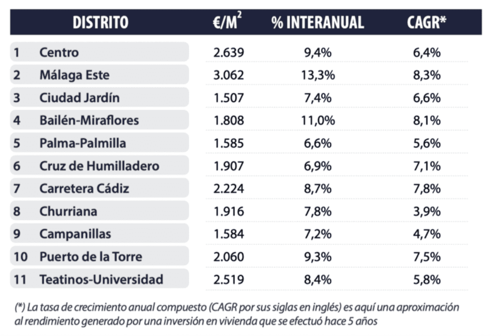 À l’opposé, c’est-à-dire dans la zone où les maisons individuelles sont les plus chères de Malaga, se trouve Cañada de los Ingleses, qui appartient au district de Malaga Est, avec un prix de 4.114€ par m2 et un prix moyen de 602.000€.