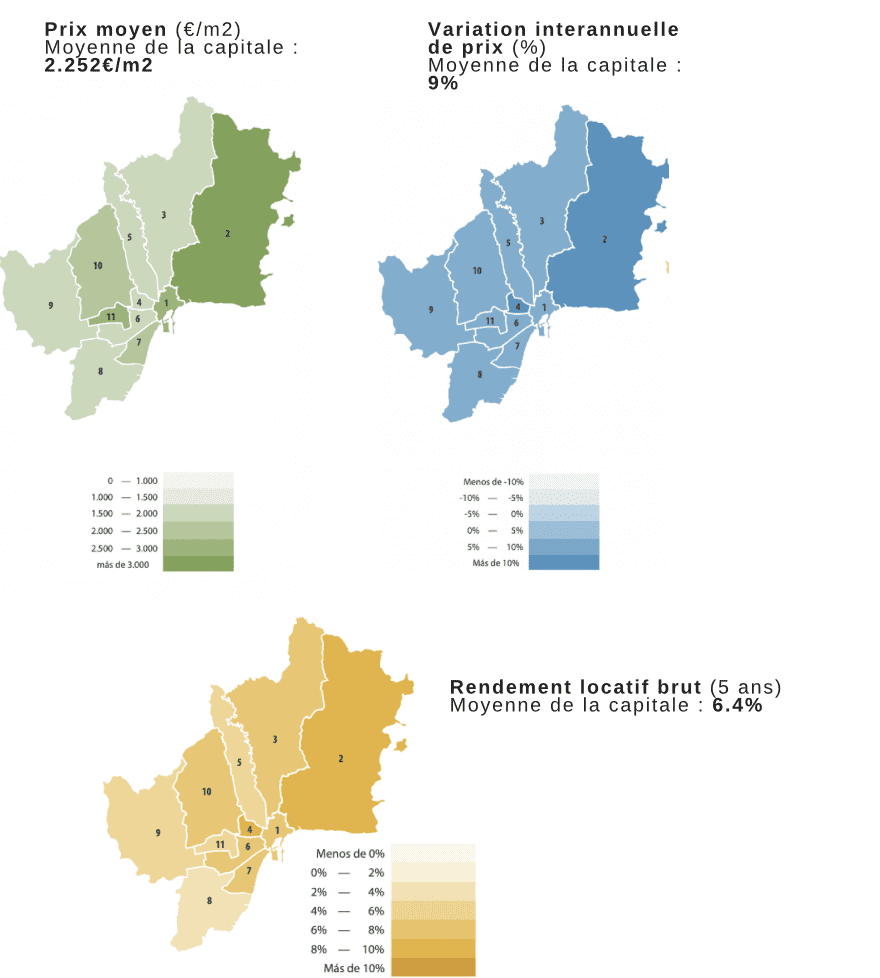 Les prix sont bien supérieurs à la moyenne espagnole de 1.779,8€/m² et un prix moyen de 457.554€.
